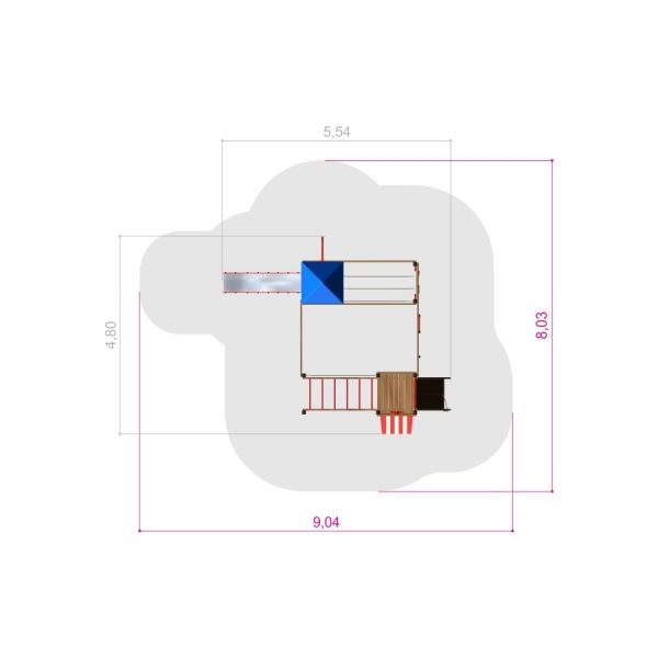 Kletter Hütte Spielanlage mit Kletterwand, Spielturm und Rutsche - Draufsicht
