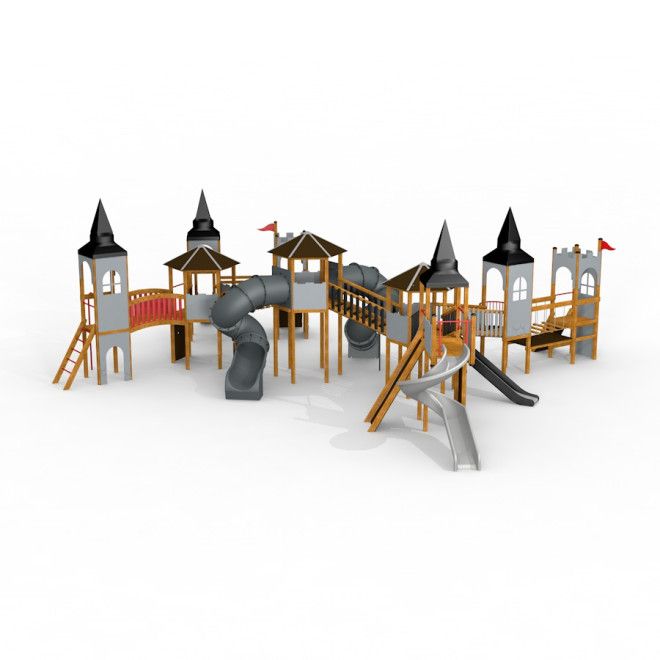 Zitadelle Spielplatz mit Spieltürme und Spiralrutschen - Isometrische Ansicht