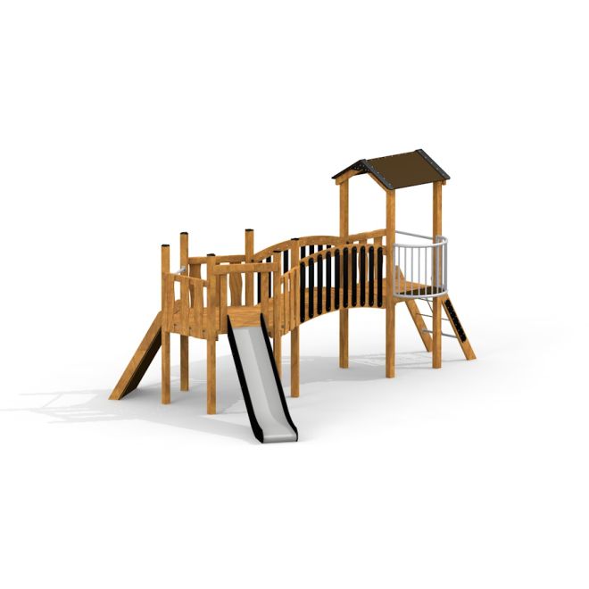 Hexagon Spielturm mit Rutsche - Isometrische Ansicht