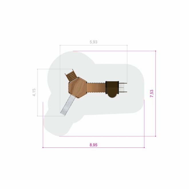 Hexagon Spielturm mit Rutsche - Draufsicht