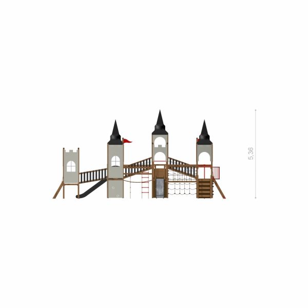 Spieltürme mit Tunnel, Rutschen und Drachen - Frontansicht