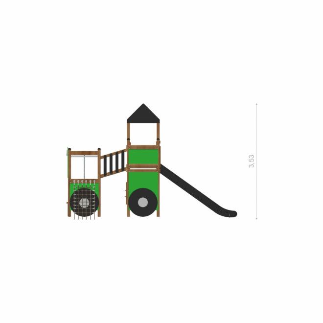 Großer Traktor Spielhaus mit Rutsche - Frontansicht