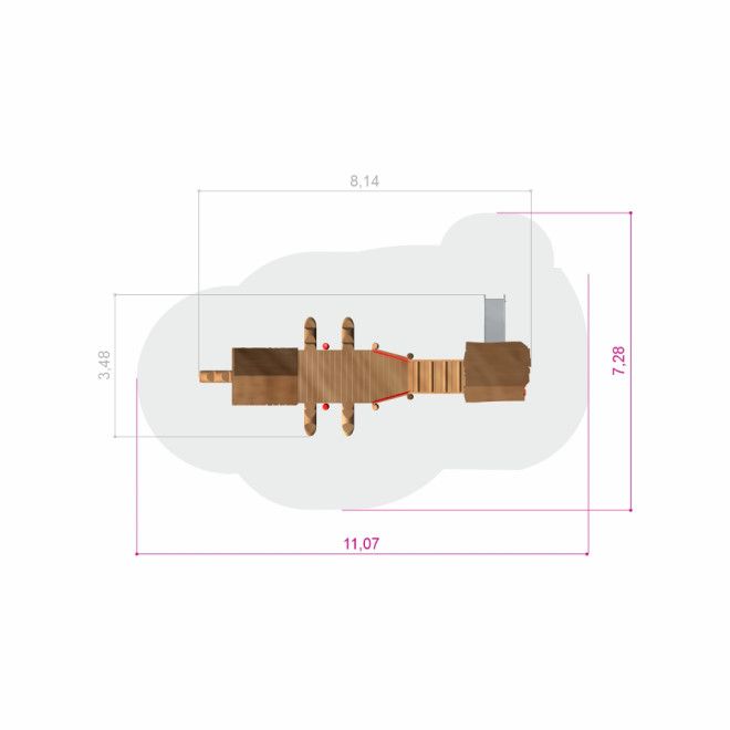 Lasses Spielhaus mit Rutsche - Draufsicht