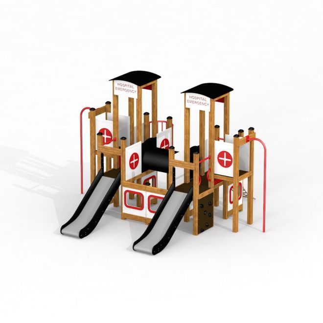 Krankenhaus Spielhaus mit Rutsche - Isometrische Ansicht