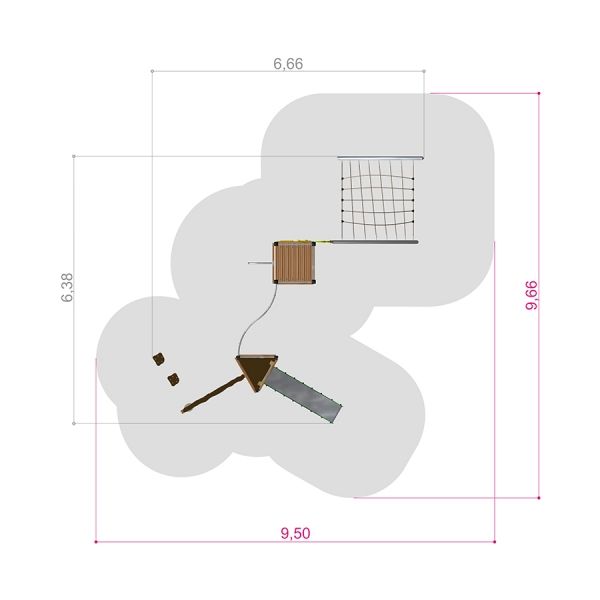 Inca Klettergerüst mit Rutsche - Draufsicht