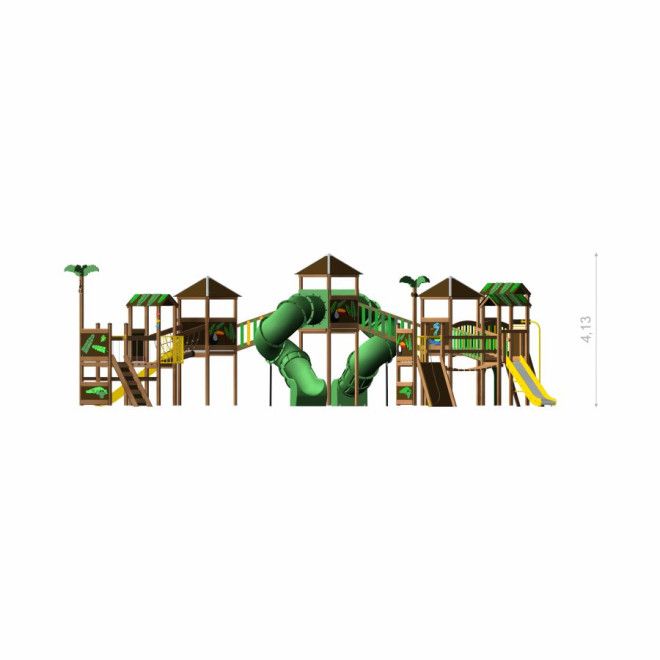 Dschungelstadt Spieltürme mit Rutschen und Spiralrutsche - Frontansicht