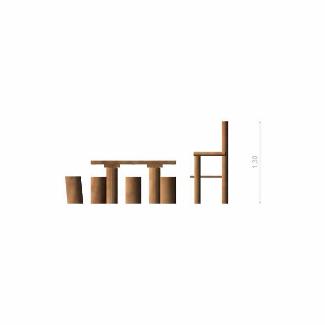 Tisch mit Stuhl und Hockern Robinie - Frontansicht