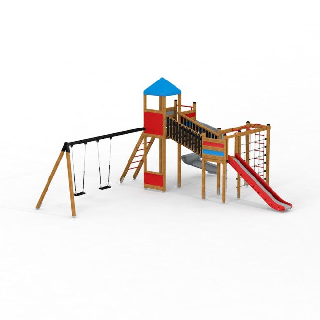 Twister Spielanlage mit Rutsche und Schaukel - Isometrische Ansicht