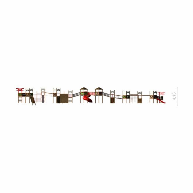 Chinesische Mauer Spielanlage mit Spieltürme und Spiralrutsche - Frontansicht