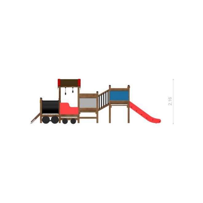 Lokomotive Spielhaus mit Kletterturm und Rutsche - Frontansicht
