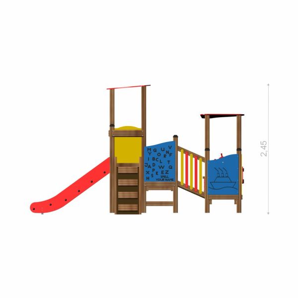 Türme mit Rutsche und Spieltafeln - Frontansicht