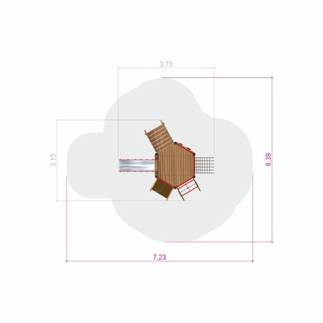Sechseck-Spielturm mit Treppe (H90) - Draufsicht