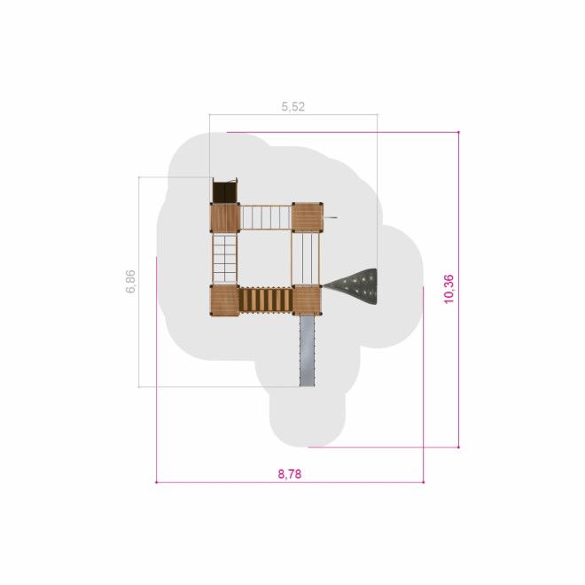 Aztek Spielanlage mit Kletterwand und Rutsche - Draufsicht