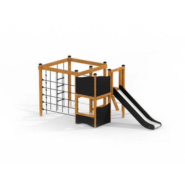 Klettergerüst mit Kletternetz und Rutsche - Isometrische Ansicht