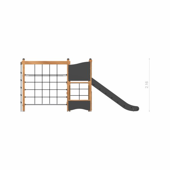 Klettergerüst mit Kletterwand und Rutsche - Frontansicht