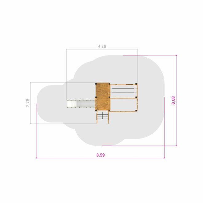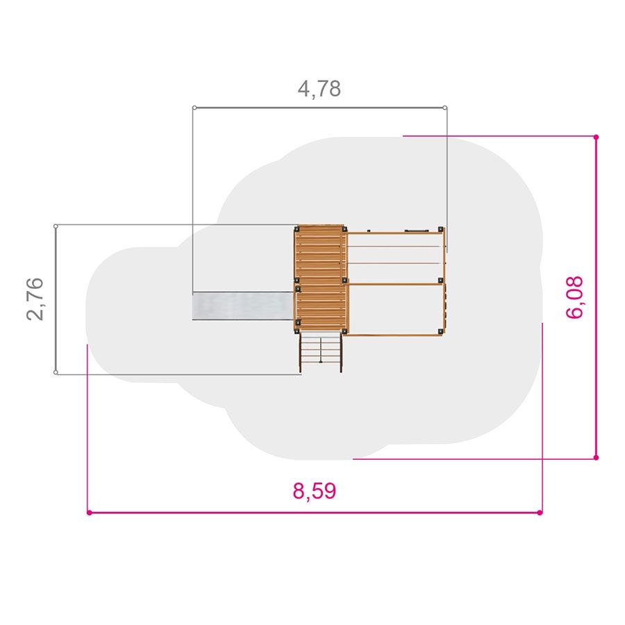 Klettergerüst mit Kletterwand und Rutsche - Draufsicht