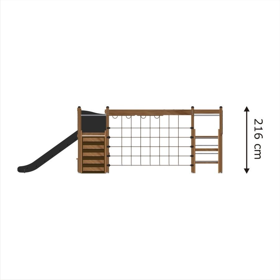 Klettergerüst mit Kletternetz, Tunnel und Rutsche - Frontansicht