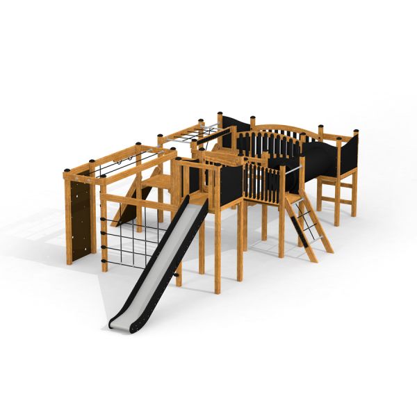 Piraten Basis Spielanlage mit Tunnel und Rutsche - Isometrische Ansicht
