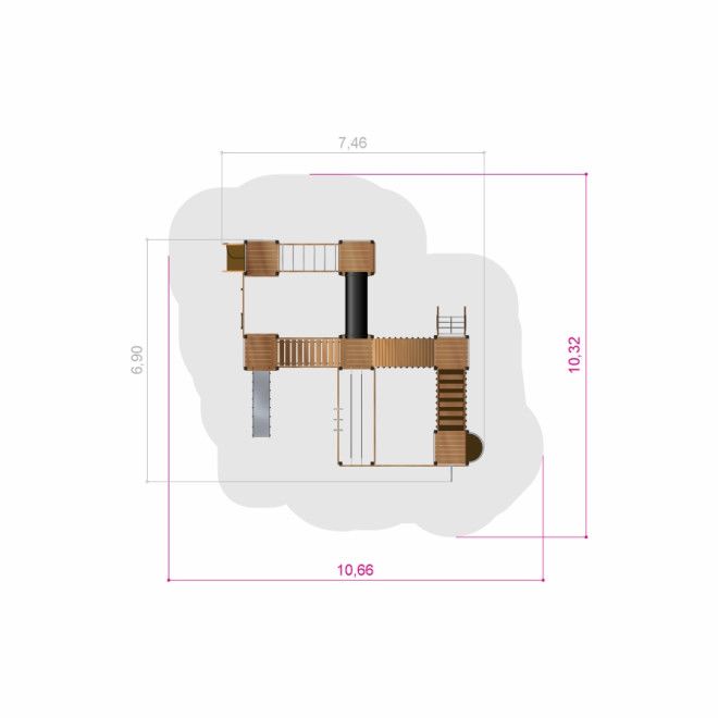 Drei Türme Festung mit Tunnel und Rutsche - Draufsicht