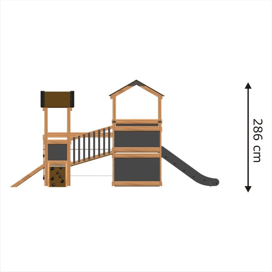 Bastei Spielhaus mit Kletternetz und Rutsche - Frontansicht