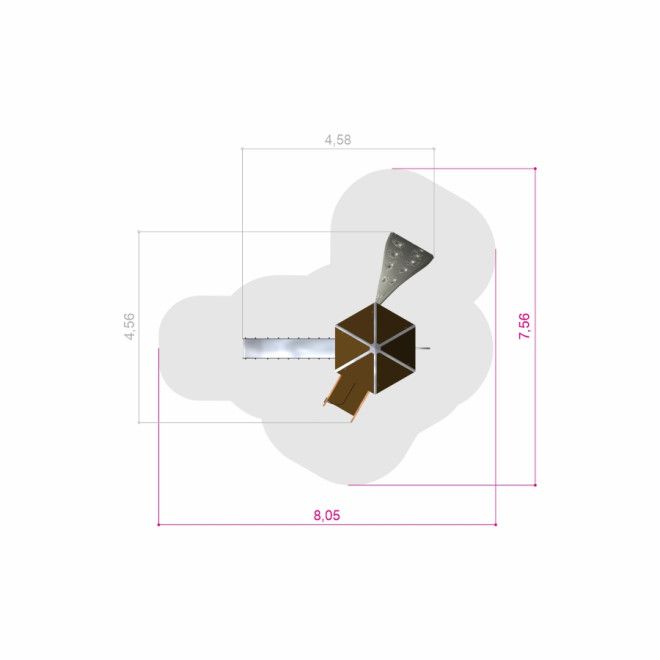 Spielturm mit Kletterwand und Rutsche - Draufsicht