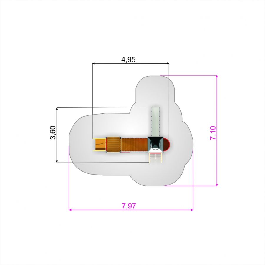 Kleine Schloßbrücke Spielturm mit Rutsche - Draufsicht