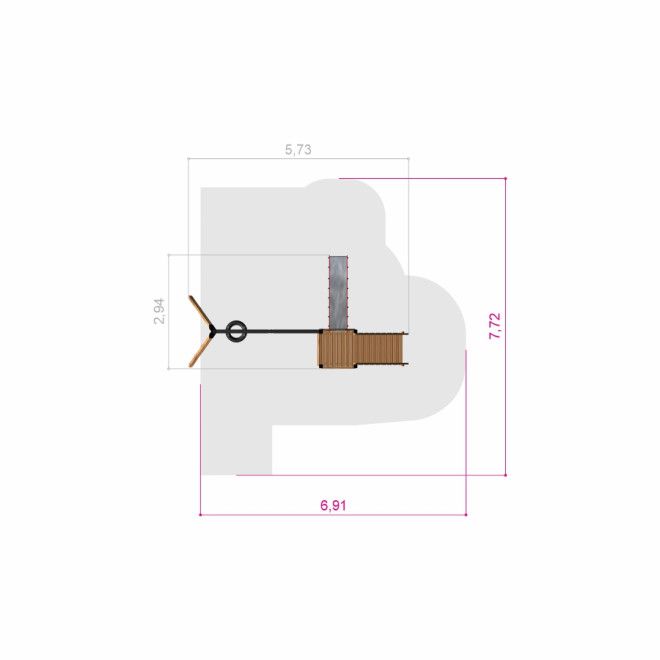 Einzel Schaukel mit Rutsche, Spielturm und Treppe - Draufsicht