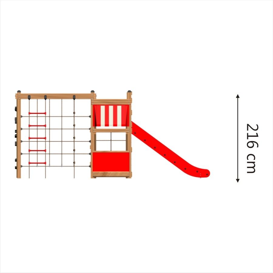 Klettergerüst mit Kletterwand und Rutsche - Frontansicht