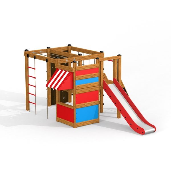 Klettergerüst mit Kletterwand und Rutsche - Isometrische Ansicht