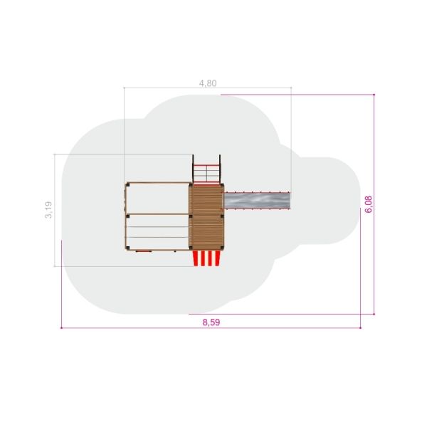 Klettergerüst mit Kletterwand und Rutsche - Draufsicht