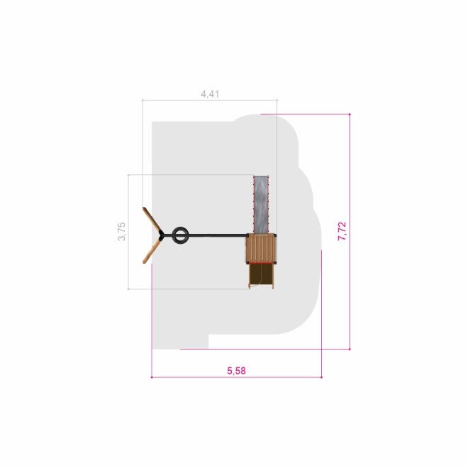Einzel Rutsche mit Spielturm und Reifenschaukel - Draufsicht