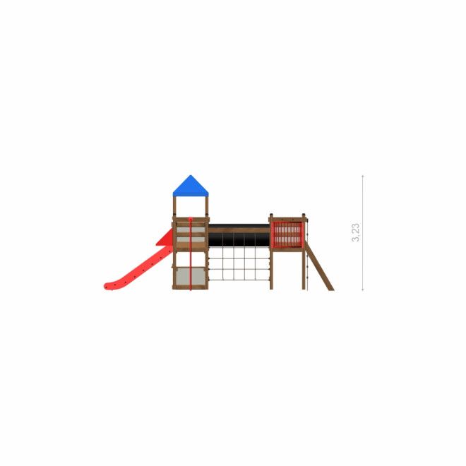Tarzan Spielanlage mit Spielturm, Tunnel und Rutsche - Frontansicht