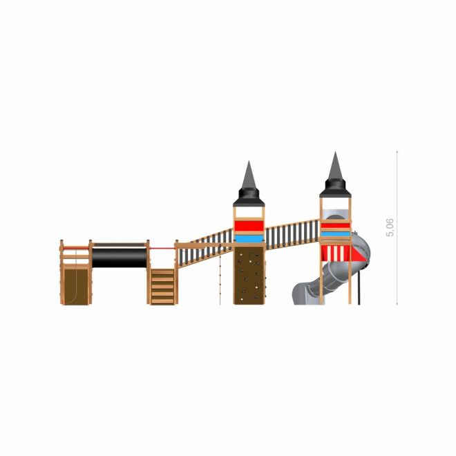 Apollo Spielanlage mit Tunnel und Spiralrutsche - Frontansicht
