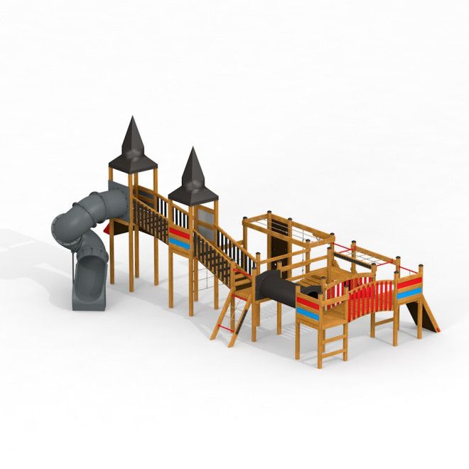 Apollo Spielanlage mit Tunnel und Spiralrutsche - Isometrische Ansicht