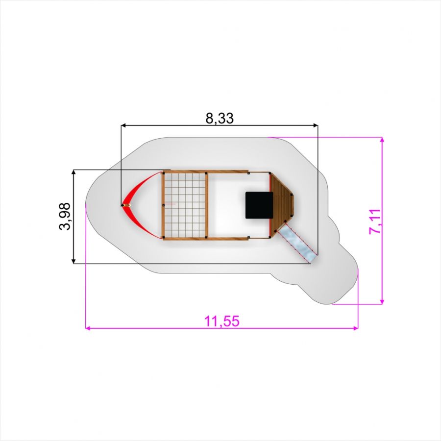 Schiff II Sandkasten mit Rutsche - Draufsicht