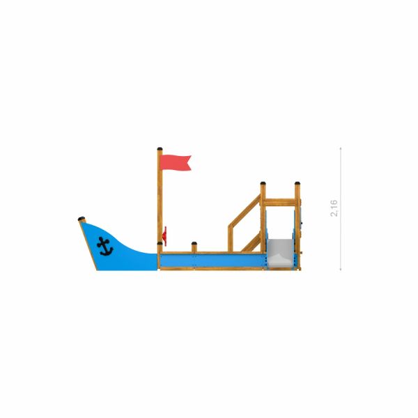 Klein Schiff mit Delphin Sandkasten - Frontansicht