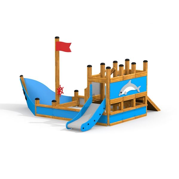 Klein Schiff mit Delphin Sandkasten - Isometrische Ansicht