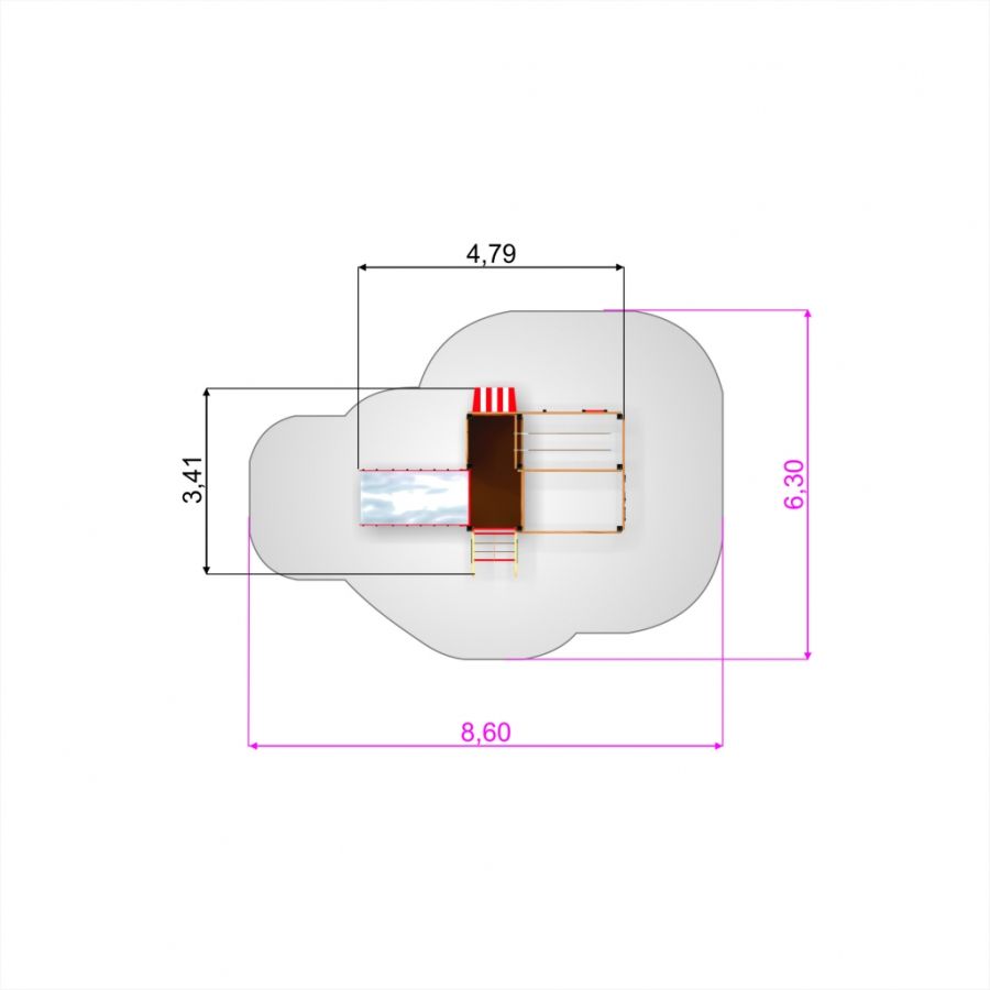 Klettergerüst mit Kletterwand und Rutsche - Draufsicht