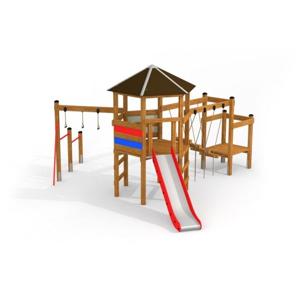 Spielturm mit Klappbrücke - Isometrische Ansicht