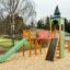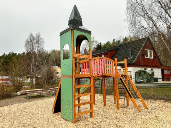 Dä Alcazar Spielturm mit Rutsche isch perfekt für Spielplatz, Park oder private Gartä, wo er zum aktiven und kreativen Spiel animiert. Er fördert motorischi Fähigkeite und soziale Interaktion i dr frische Luft.