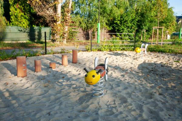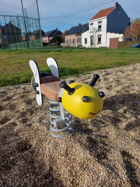 Ideal für öffentliche Spielplätze, Kindergärten und private Gärten, fördert die Biene Federwippe spielerisch die Motorik und Koordination vo de Chind. Sie bringt Lebendigkeit i jede Spielplatzlandschaft und lädt Kinder zum aktiven und fantasievollen Spielen ii.