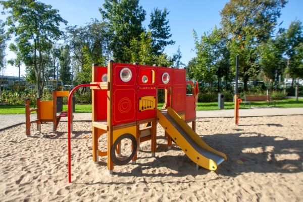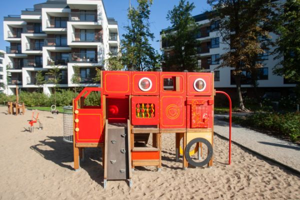 Der Spielplatz wurde mit modernen, umweltfreundlichen Geräten aus einer Linie entworfen und ausgestattet, die mit dem renommierten Nordic Swan Ecolabel zertifiziert ist. Dieses skandinavische Zertifikat, eines der bekann...