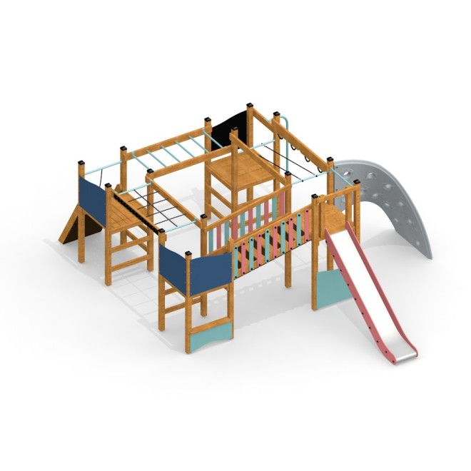Aztek Spielanlage mit Kletterwand und Rutsche, Klettern, Spielplatzgeräte | LARS LAJ® (19415)