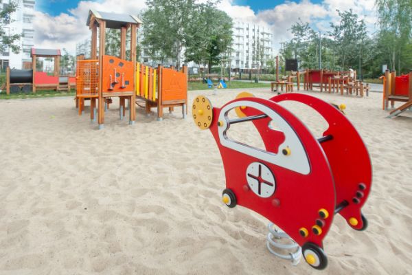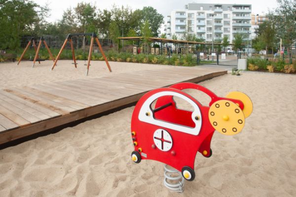 Der Spielplatz wurde mit modernen, umweltfreundlichen Geräten aus einer Linie entworfen und ausgestattet, die mit dem renommierten Nordic Swan Ecolabel zertifiziert ist. Dieses skandinavische Zertifikat, eines der bekann...