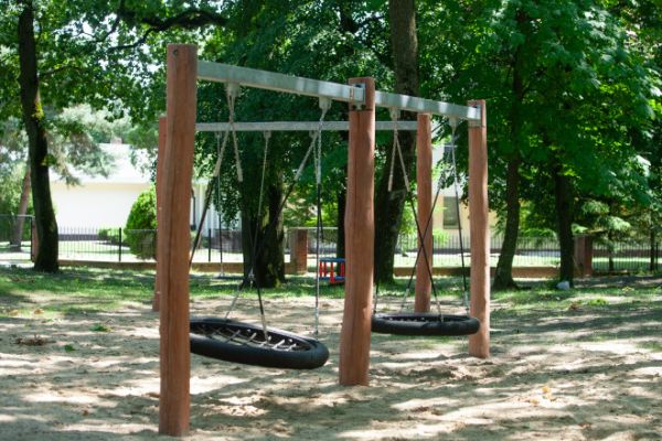 Die Doppel Nestschaukel passt optimal i naturnahe Spielplätz und Erholigsgärtli. Sie fördert d’Bewegig, Koordination und soziales Miteinand und bringt Kinder zäme, wo Spass und Aktivität verbinde. Durch ihr natürlichs Design füegt sie sich harmonisch i verschideni Umgebige y.
