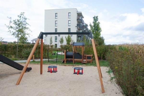 Der Spielplatz wurde mit modernen, umweltfreundlichen Geräten aus einer Linie entworfen und ausgestattet, die mit dem renommierten Nordic Swan Ecolabel zertifiziert ist. Dieses skandinavische Zertifikat, eines der bekann...