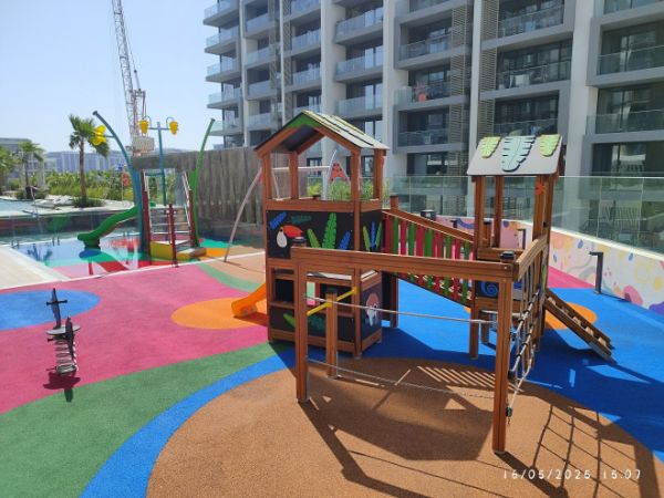 Das Dschungel Spielhaus mit Rutsche isch e vielseitigs und farbigs Element, wo zum Klettern, Rutsche und Entdecke i jedere öffentleche oder private Spielplatzumgebig eigsetzt wird. Perfekt für Schulhöf, Kindergärten oder Parks, fördert s’Spielhaus Bewegig, Kreativität und soziale Interaktion.
