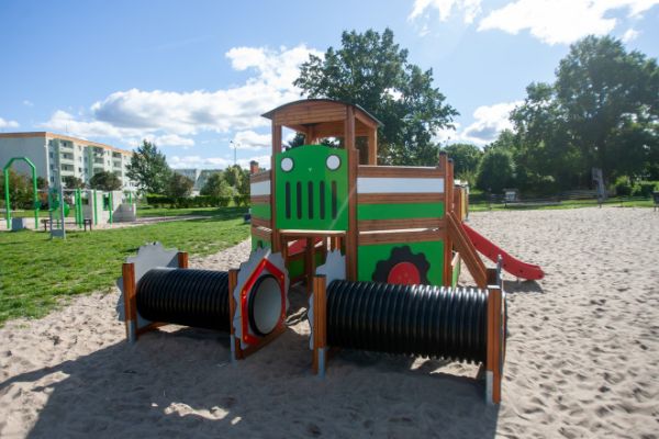 Der Spielplatz wurde mit modernen, umweltfreundlichen Geräten aus einer Linie entworfen und ausgestattet, die mit dem renommierten Nordic Swan Ecolabel zertifiziert ist. Dieses skandinavische Zertifikat, eines der bekann...