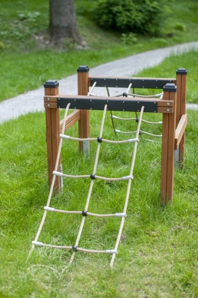 Für d'Herstellung vom Hinderniss- parcour wird robusts Lärchenholz verwendet, ergänzt mit verzinktem Stahl für langfriistigi Stabilität. Die Elemente us recyceltem HDPE und PE garantiered eine umweltfreundlichi und widerstandsfähigi Oberfläche, wo de äusseren Bedingige trotzt.