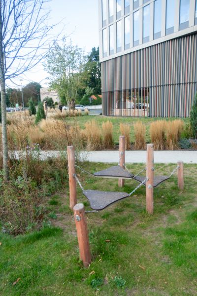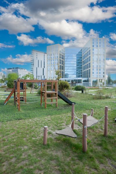 Der Spielplatz wurde mit modernen, umweltfreundlichen Geräten aus einer Linie entworfen und ausgestattet, die mit dem renommierten Nordic Swan Ecolabel zertifiziert ist. Dieses skandinavische Zertifikat, eines der bekann...